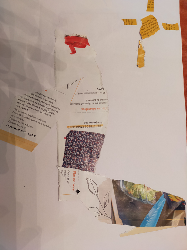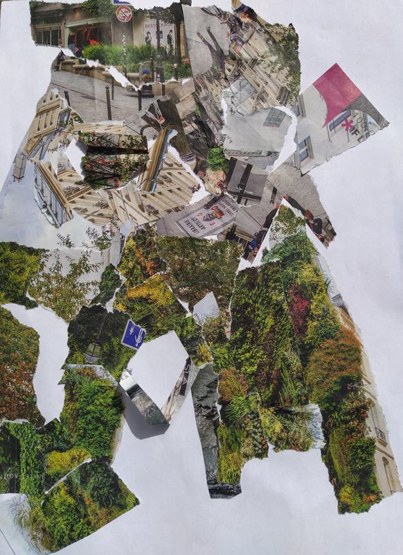 J’ai collé ensemble les morceaux de la ville, les uns contre les autres, dans tous les sens et en essayant de laisser le moins de blanc sur la feuille. Parfois j’ai superposé des morceaux.