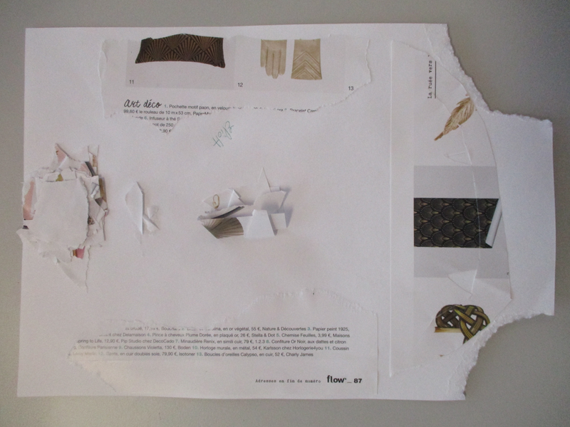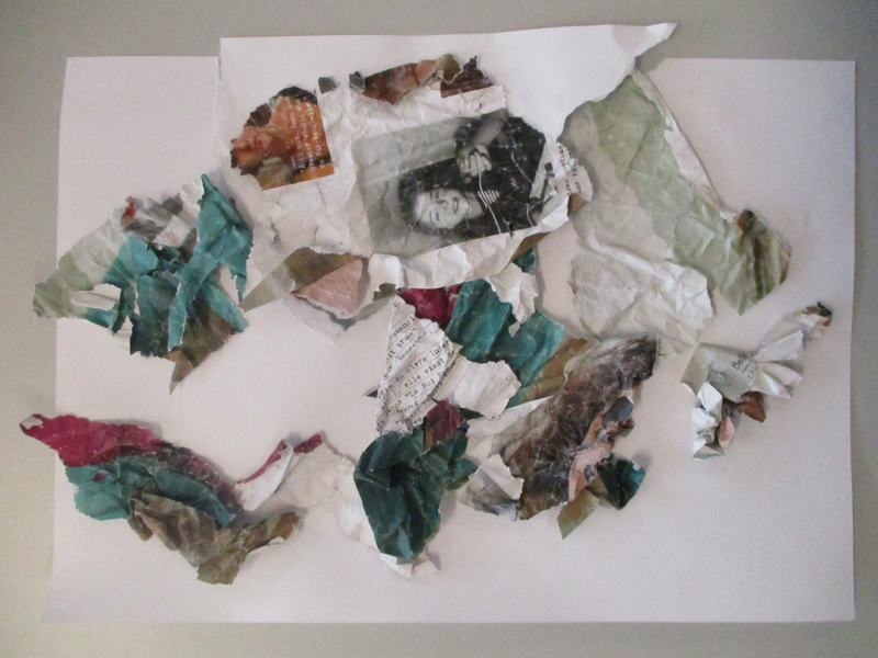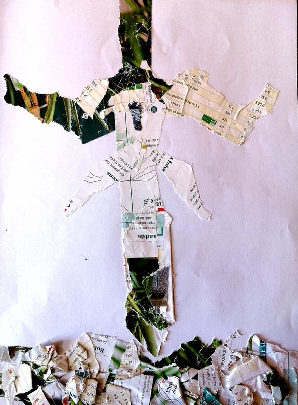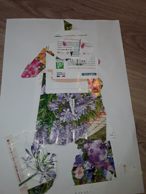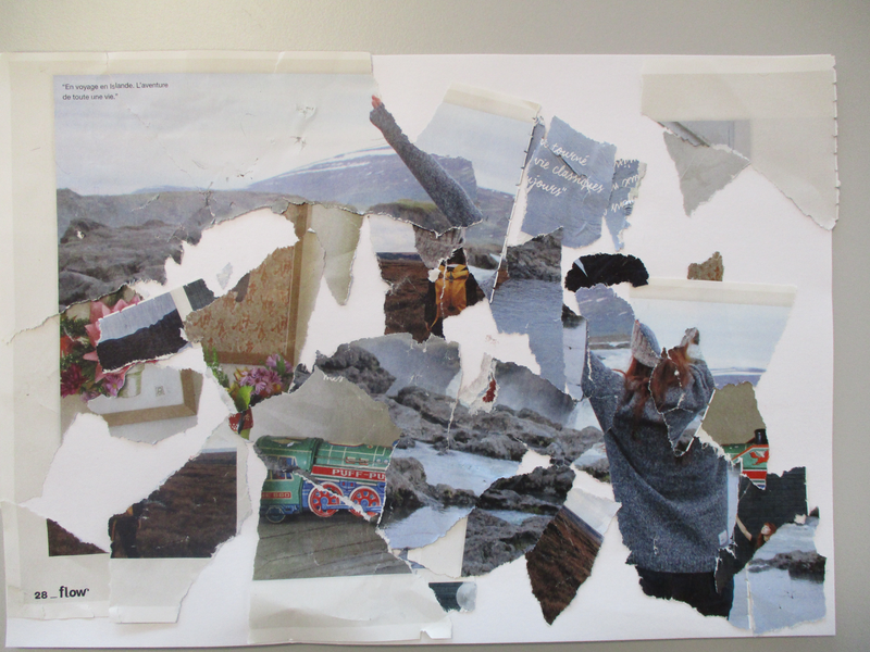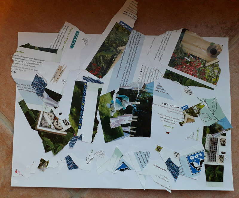 Pour créer mon œuvre j'ai découpé, froissé, déchiré un morceau de magazine. Avec les morceaux récolté j'ai reconstitué une forme, une épée en relief grâce à la superposition du papiers j'ai donné un peu plus de volumes aux rochers pour donner un effet en 3dimensions.