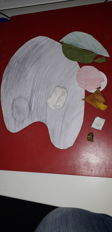 J'ai fait la technique de frottage pour la palette et le pétale et la feuille du rosier et la technique d'emprunte pour le bout du pinceau et le bouton de rose