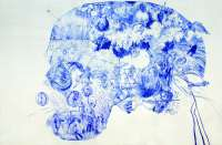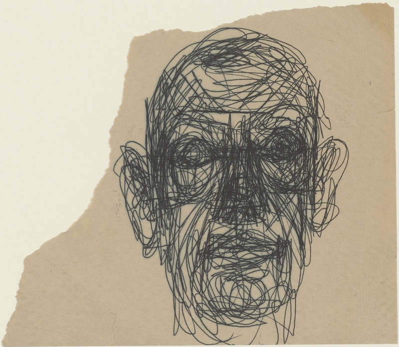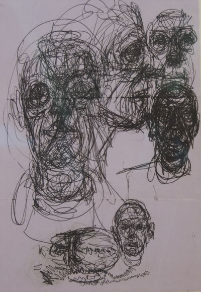 Cinq têtes dont une de profil, c. 1963. Stylo-bille noir sur lettre. Fondation Giacometti.