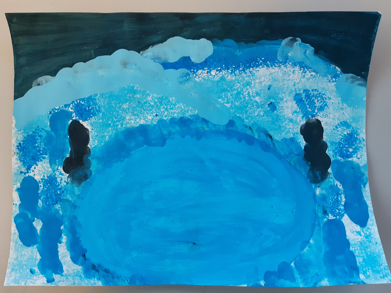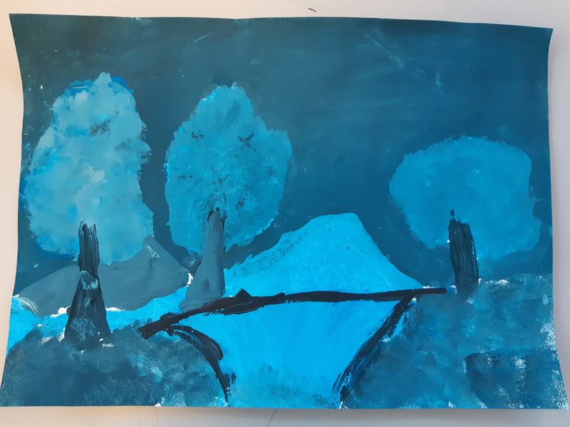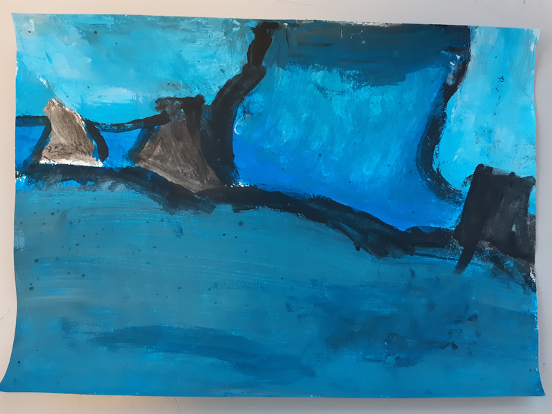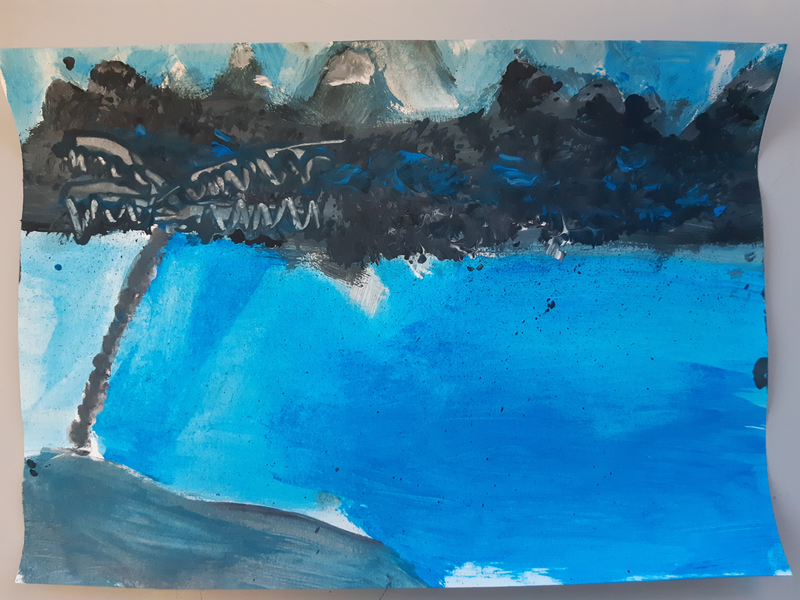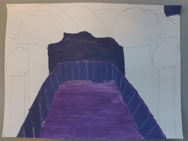 - Pour le ciel, j'ai utilisé le gros pinceau.