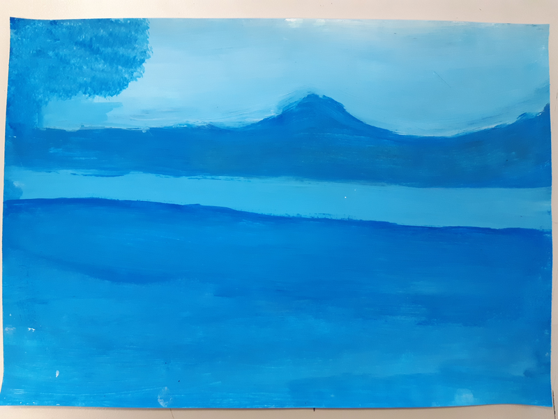 Pour réalisé mon paysage en camaïeu c'est à dire une peinture réalisée avec plusieurs nuances d'une même couleur, j'ai utilisé la couleur bleu.