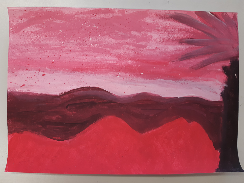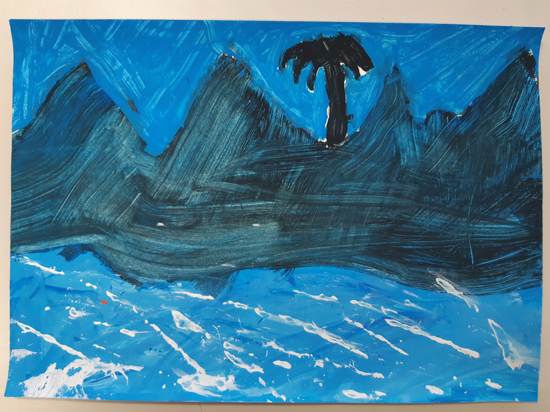 J'ai adoré faire le ciel car j'aime cette couleur bleu clair je ne suis pas du tout déçu de mon œuvre !