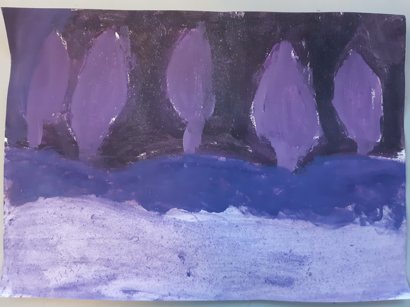 POUR MON CAMAÏEU, J'AI UTILISÉ LA COULEUR VIOLETTE.