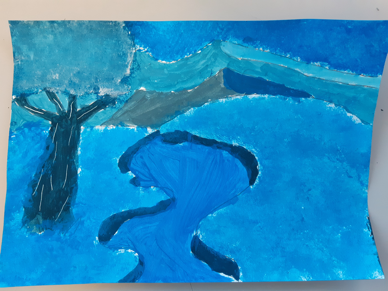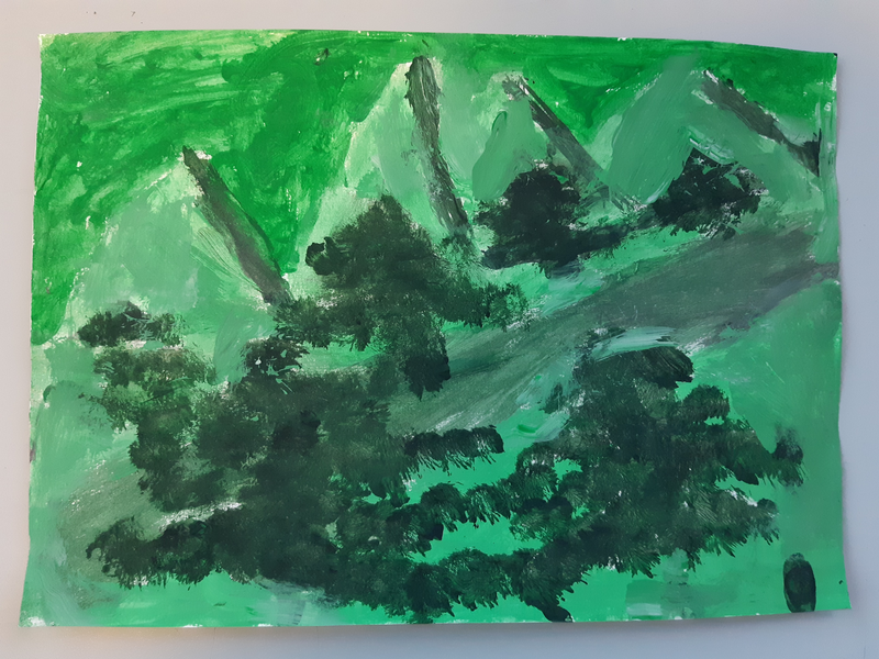 J'ai fait un camaïeux de vert pour faire ma peinture sans utiliser la technique du lavis.