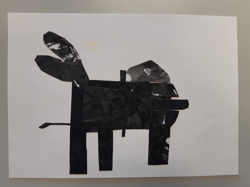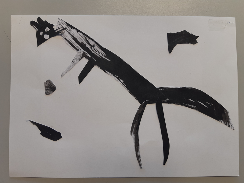puis j ai mis de l encre noir et pour terminer on coupe et j ai imaginer une girafe et un loup