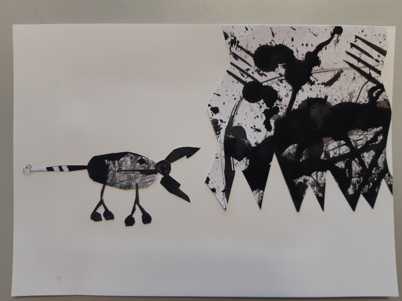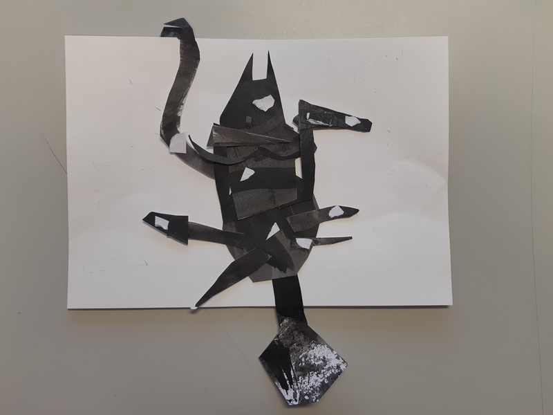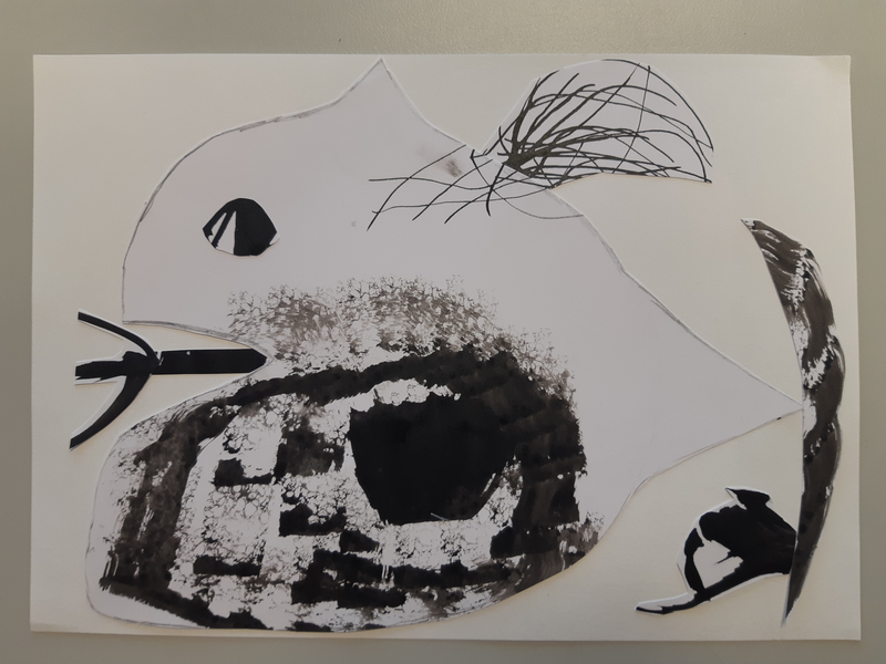 On les a assemblé entre elles et collée sur une feuille blanche pour former un monstre imaginaire.
