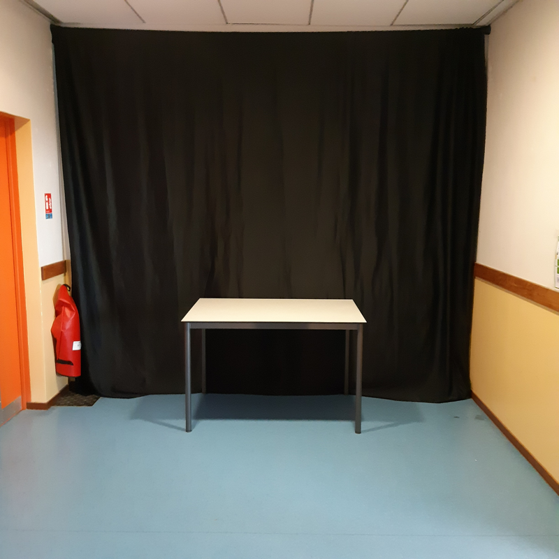 Installation dans le couloir pour les tournages nécessitant le noir complet.