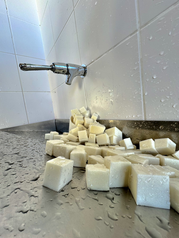 On a fait cette oeuvre pour dénoncer le réchauffement climatique on a produit un iceberg qui est représenté par un verre peint avec de la peinture blanche ,et avec le réchauffement climatique les iceberg fondent et ça les disperse en petit glaçon qui est ici représenté par des petits cubes de polystyrène et on a rajouter des gouttes d'eau dessus pour bien se mettre dans le thème.
