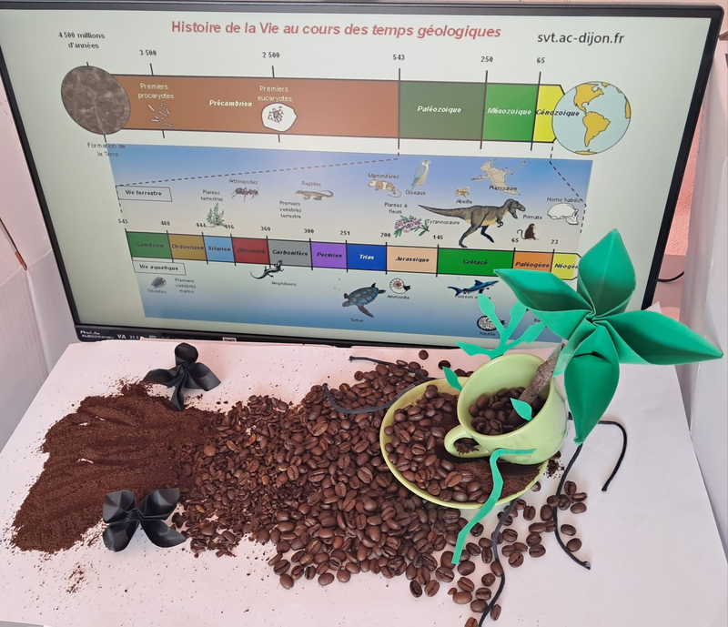 En arrière plan nous avons mis une représentation de l'évolution de la vie sur terre.