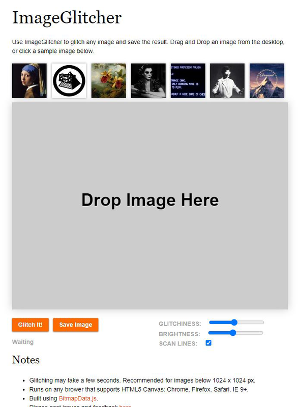 2. Une fois sur le site, cliquez sur « load image » (tout en bas) pour sélectionner la photo ou l’image sur laquelle vous souhaitez appliquer l’effet glitch.