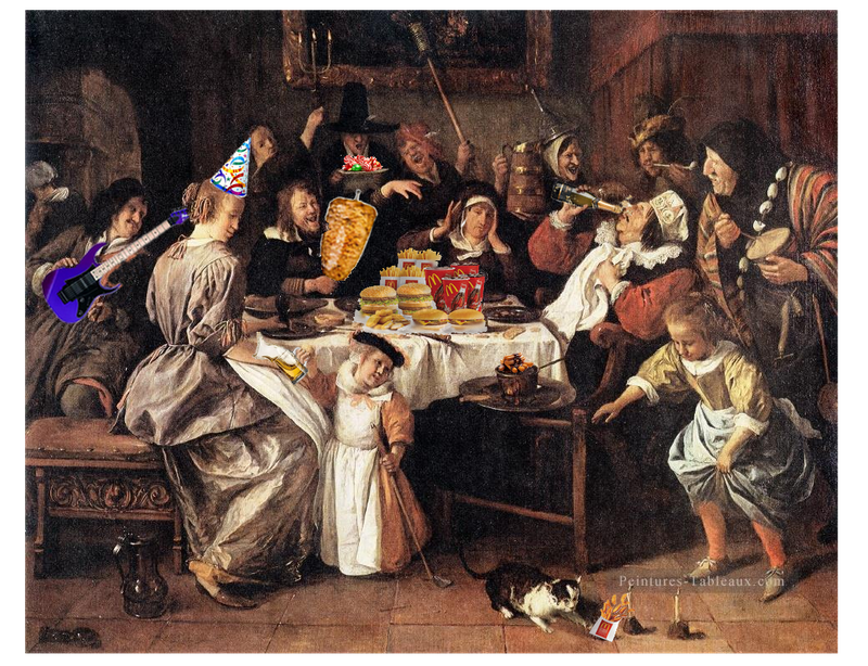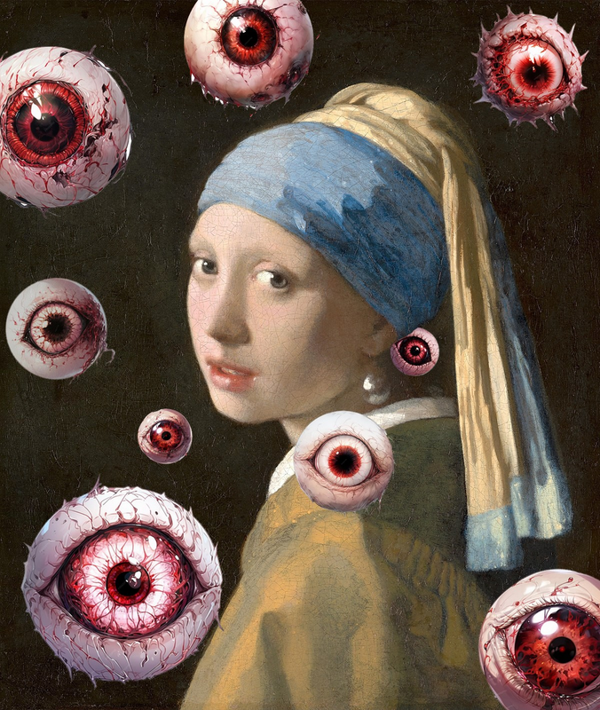 En effet cette histoire est du tableau est peu connu du grand publique, c’est pourquoi j’ai décidé de la mettre en valeur en ajoutant un contexte assez particulier. Ses gros yeux rouges que j’ai disposés à différents endroits sur l’oeuvre représentent l’ignorance du public face à la parution du tableau.