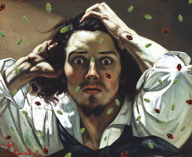 J’ai fait le choix de rajouter des insectes car je voulais rester assez cohérent avec l’œuvre. Au départ j’avais pris des coccinelles mais j’ai préféré les papillons, parce que d’une part j'ai trouvé qu’ils étaient plus en accord avec l'œuvre, d’autre part parce que leur couleur s’adapte par rapport à la couleur verte des feuilles.