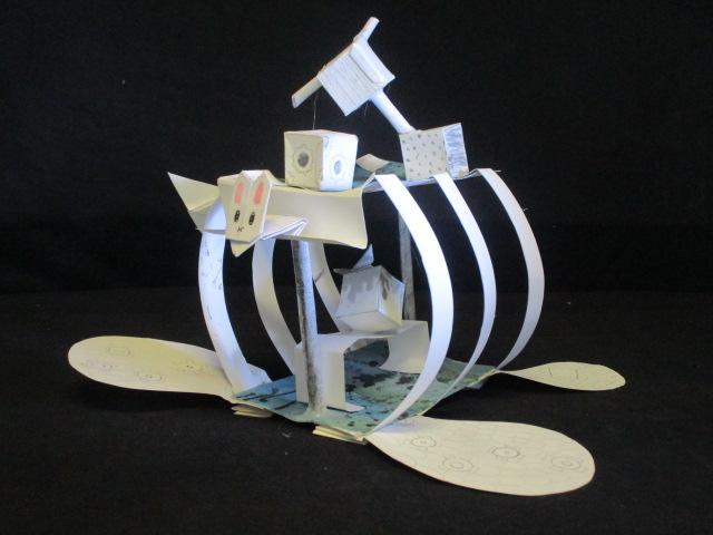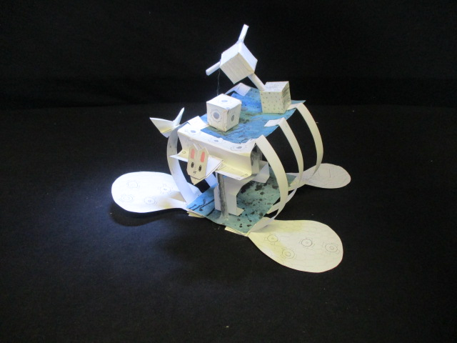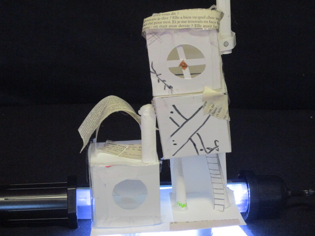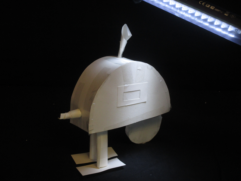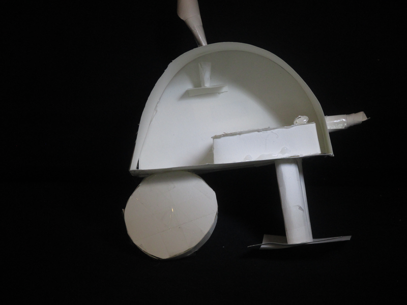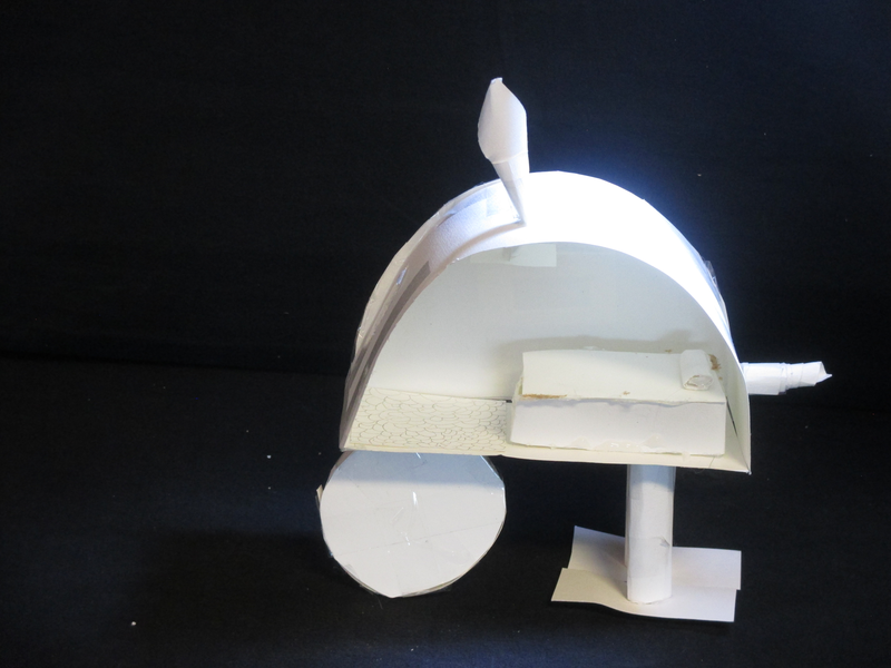 Tout dabord nous avons commencé a crée la roue.Après nous avons réalisé le propulseur en nous inspirant de l'élisse d'avion de Agdag Daniel pour propulser notre machine puis nous avons fait la cheminée.Elle peut marcher et quand les pattes sont épuisées, la machine roule.