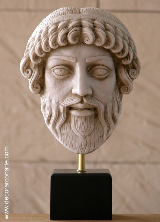 Zeus est fréquemment représenté par des artistes grecs dans l'une des deux poses suivantes : debout, s'avançant avec un foudre dans sa main droite levée ou assis en majesté. Les premières traces connues de Zeus sont attestées dans des tablettes mycéniennes du IIe millénaire av. J.-C.[réf. nécessaire].
