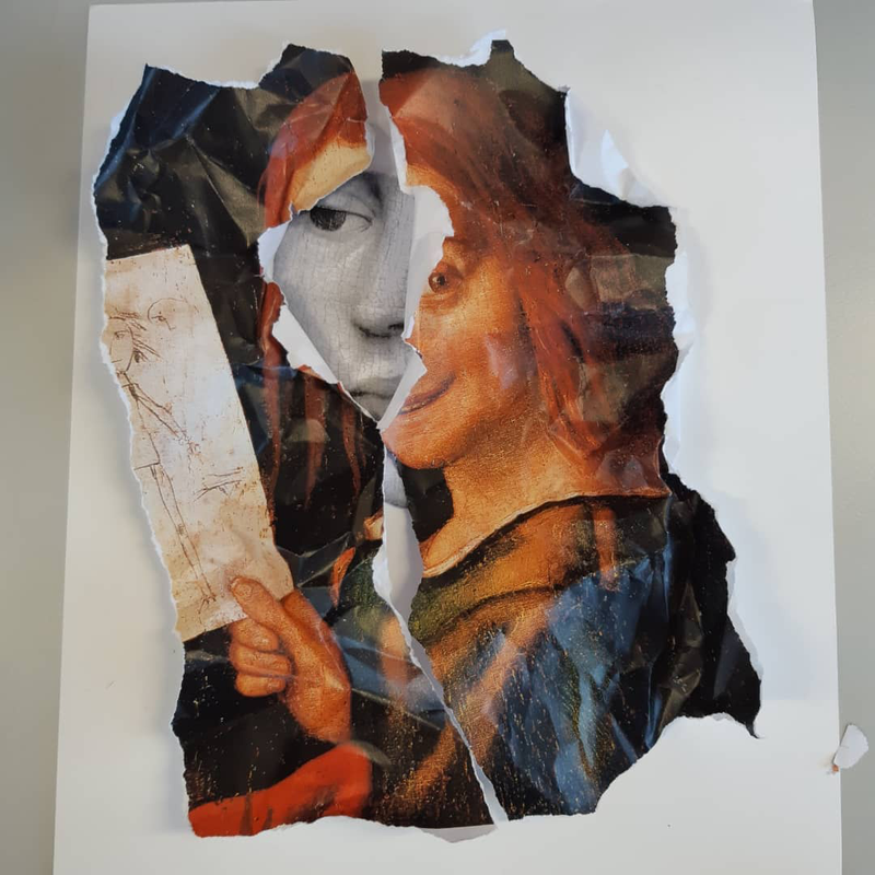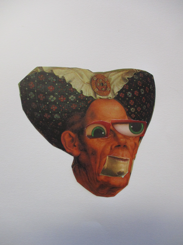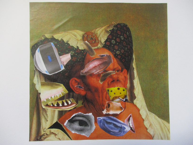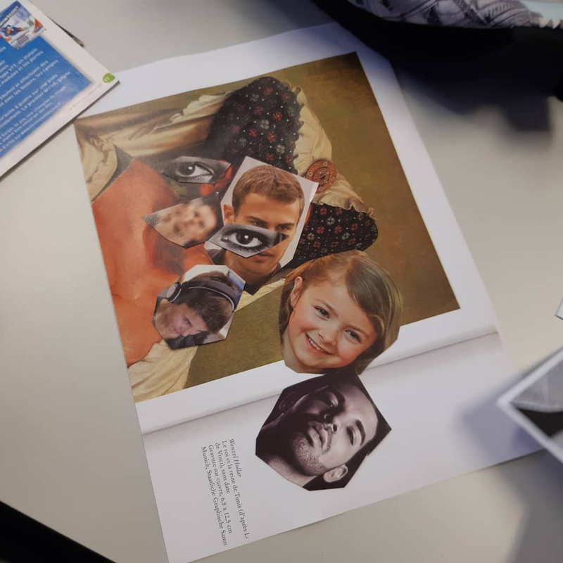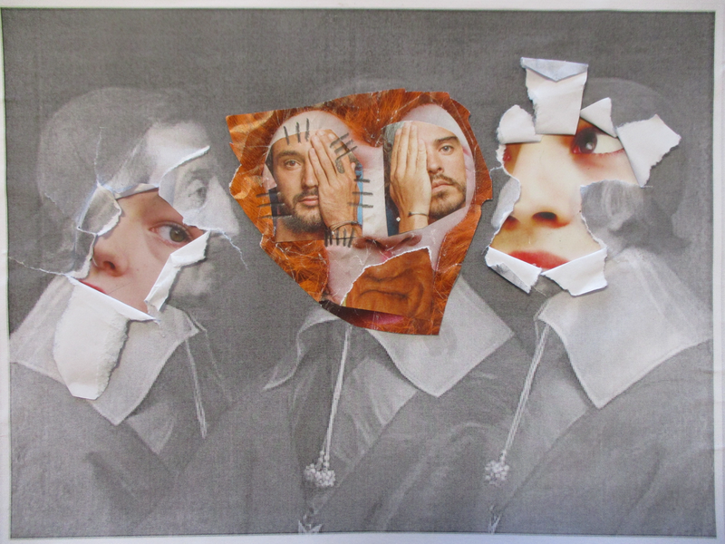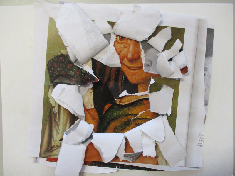 -déchirer les têtes du portrait et j'ai collé deux autres têtes par derrière