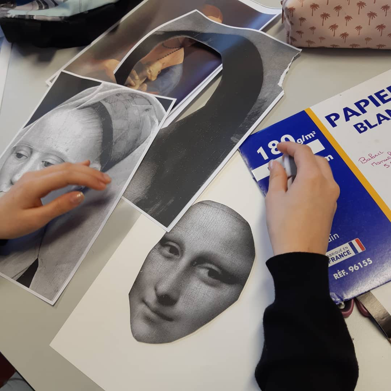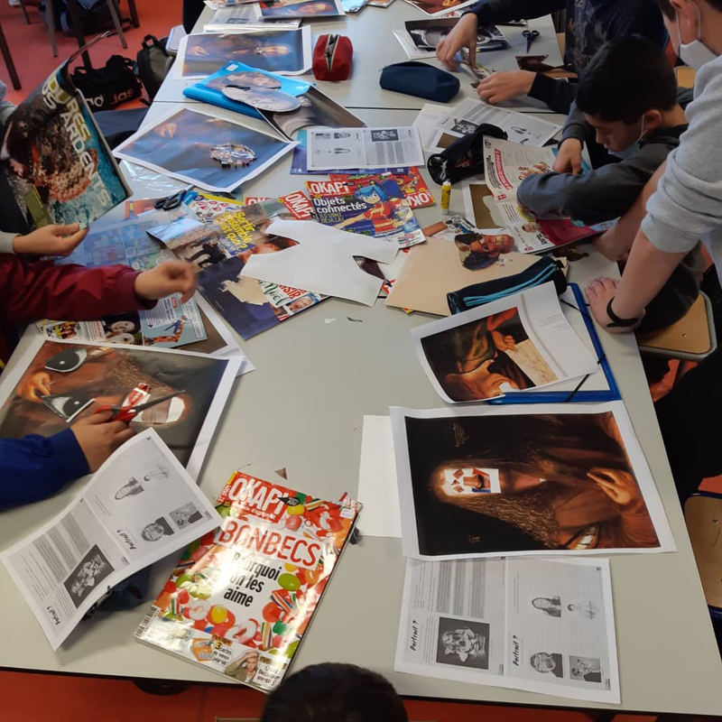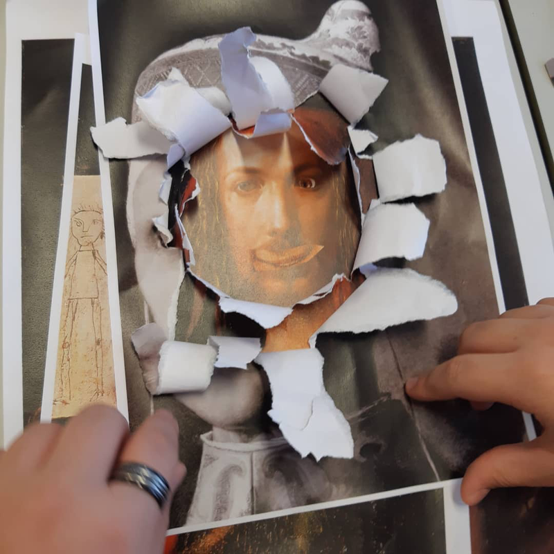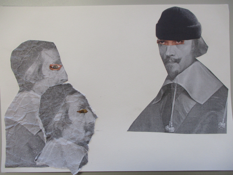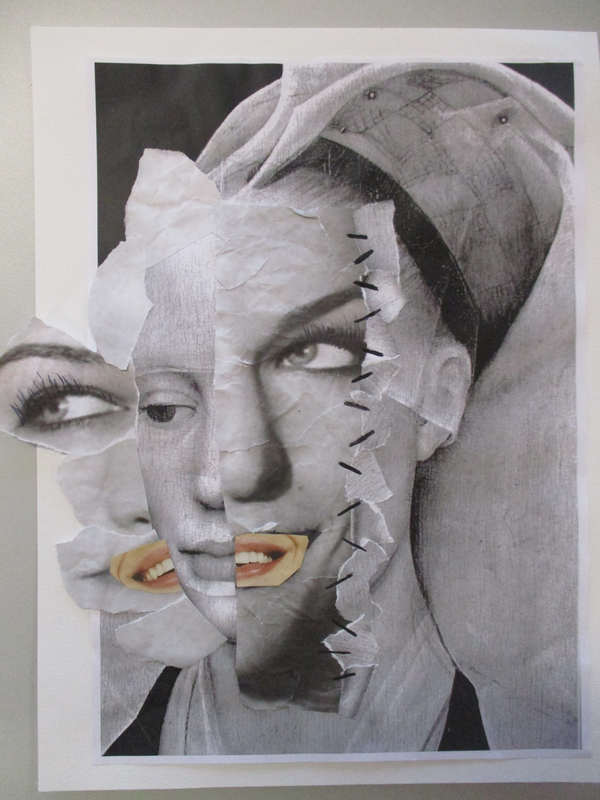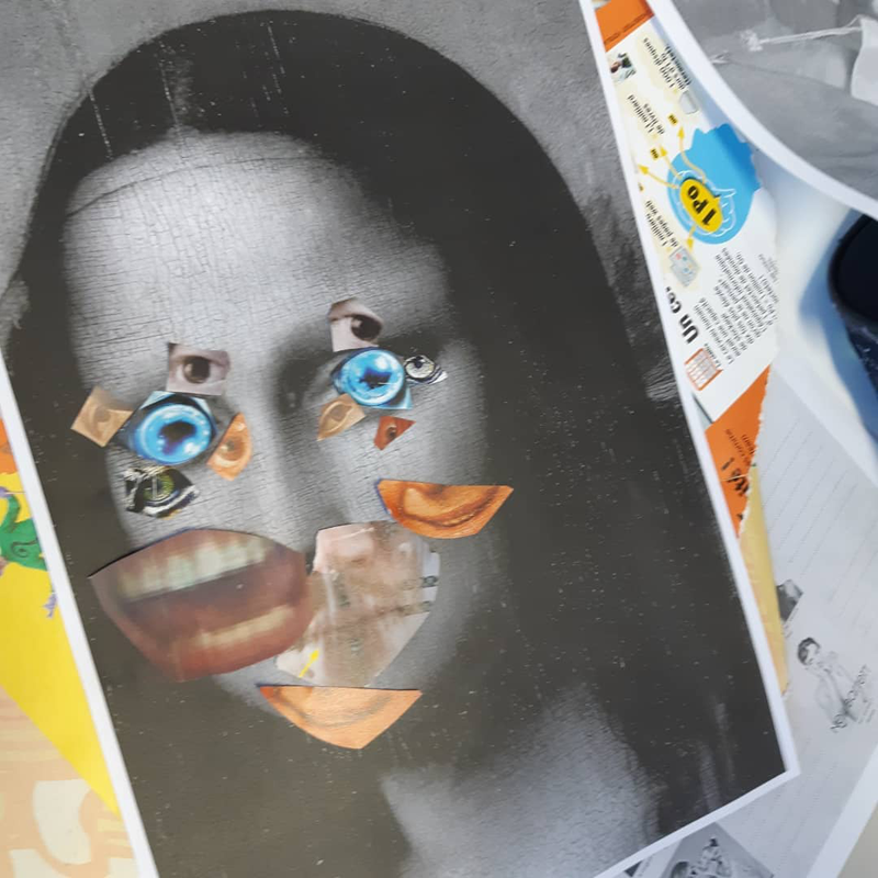 -déchirer les têtes du portrait et j'ai collé deux autres têtes par derrière