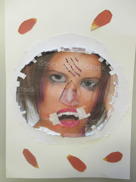 j'ai déchiré son front puis j'ai collé derierre une image noire